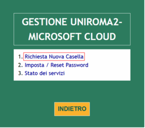 La procedura termina con un messaggio di conferma da parte del sistema, l’utente può selezionare indietro per procedere con la verifica dello stato dei servizi